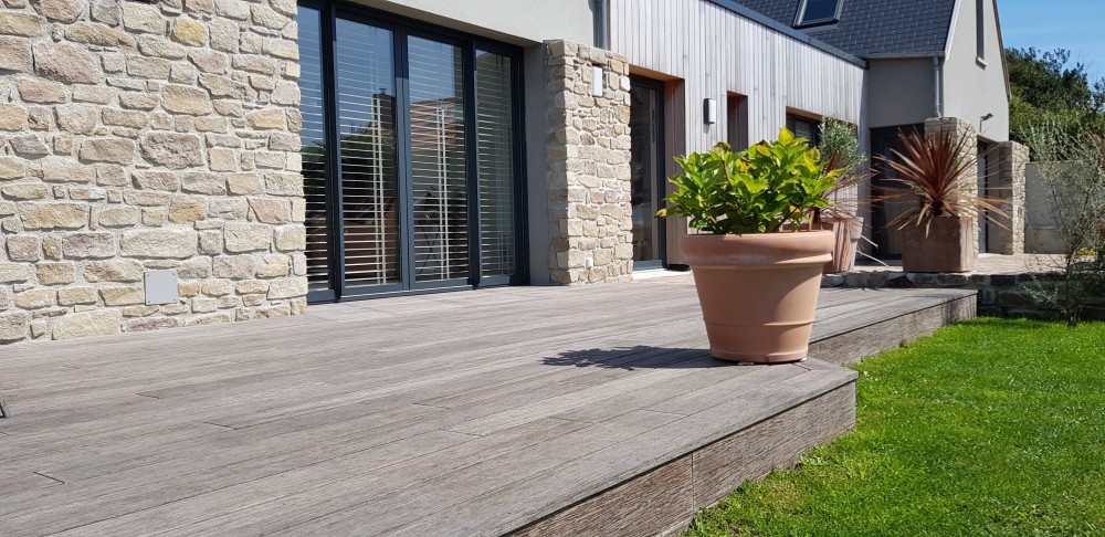 Création de la terrasse bois d'une maison de la Hague proche de la mer.