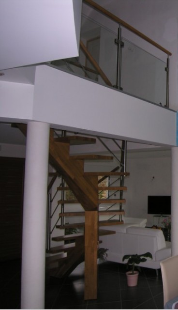 Réalisation d'un escalier avec limon central et piètement d'assise.