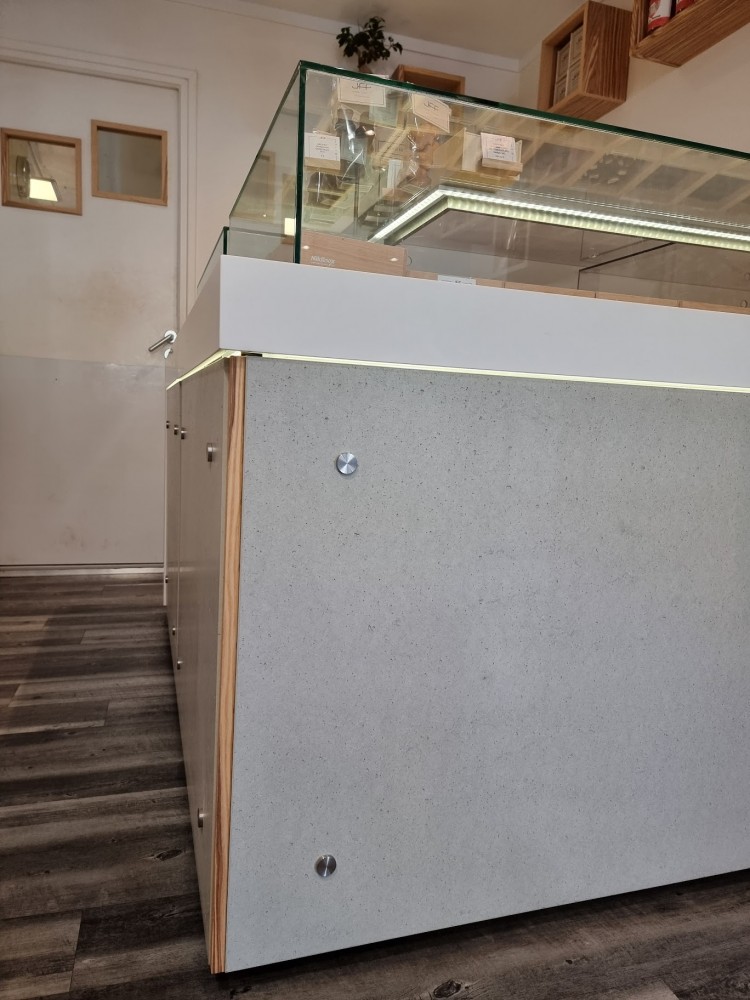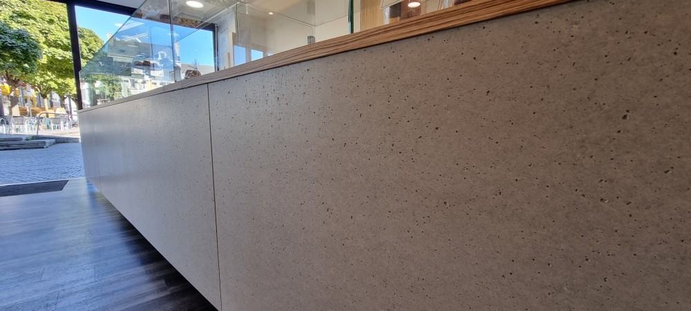 - Du mobilier sur-mesure et de la menuiserie intérieure en différentes matières, béton et bois